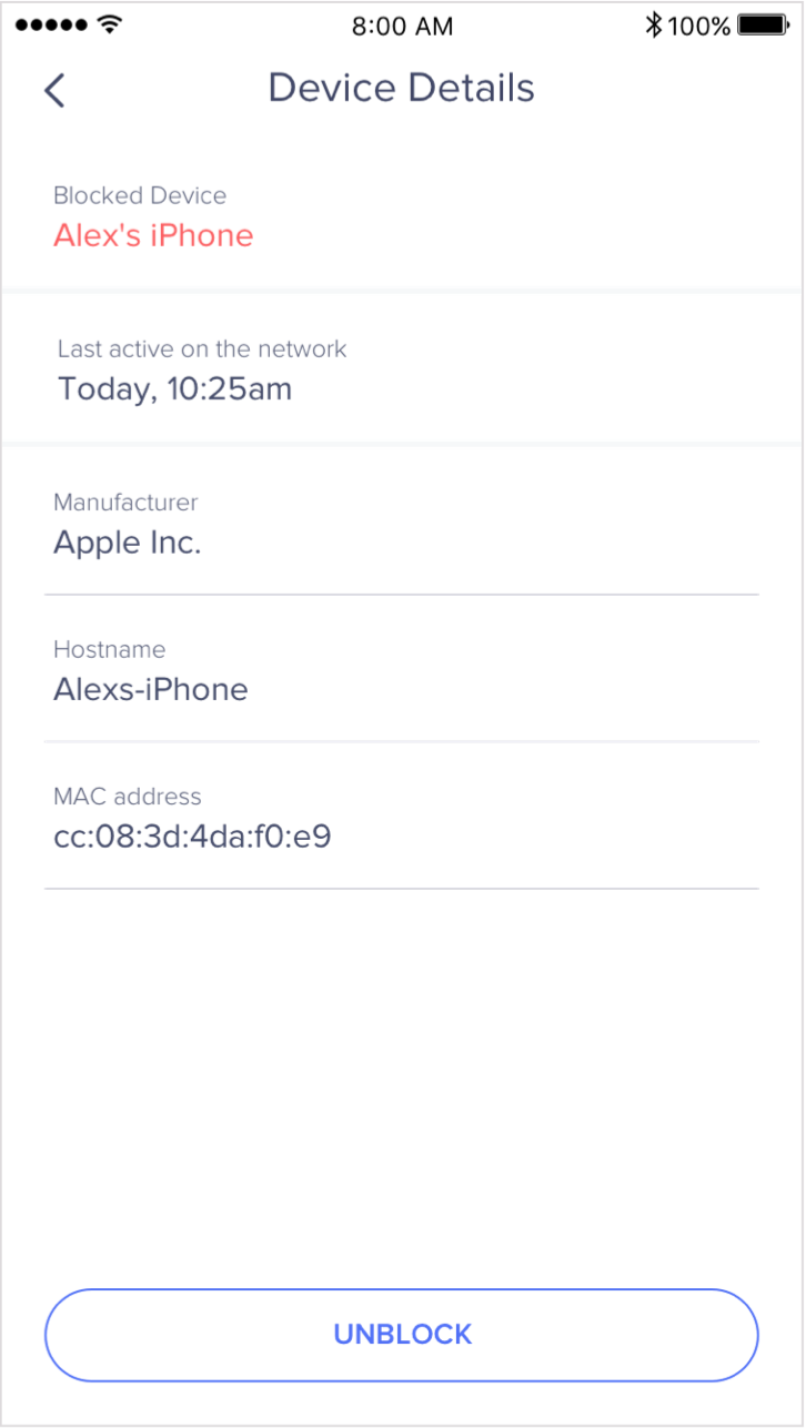 If you’d like to unblock a device, go to the connected device list, scroll to the bottom, and tap on Blocked devices. Tap on the device you’d like to unblock and tap Unblock at the bottom: