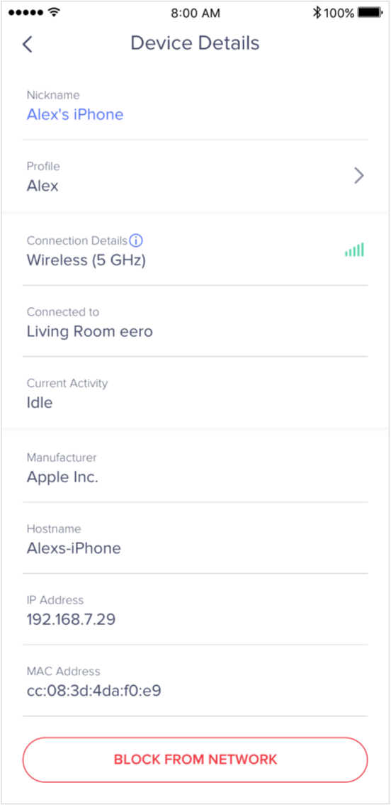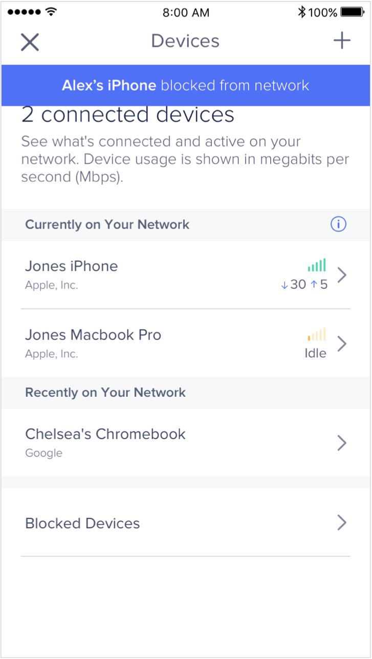 To get started, open the eero app and tap on connected devices. There will be two lists; one for devices currently on your network and another for recently connected devices.