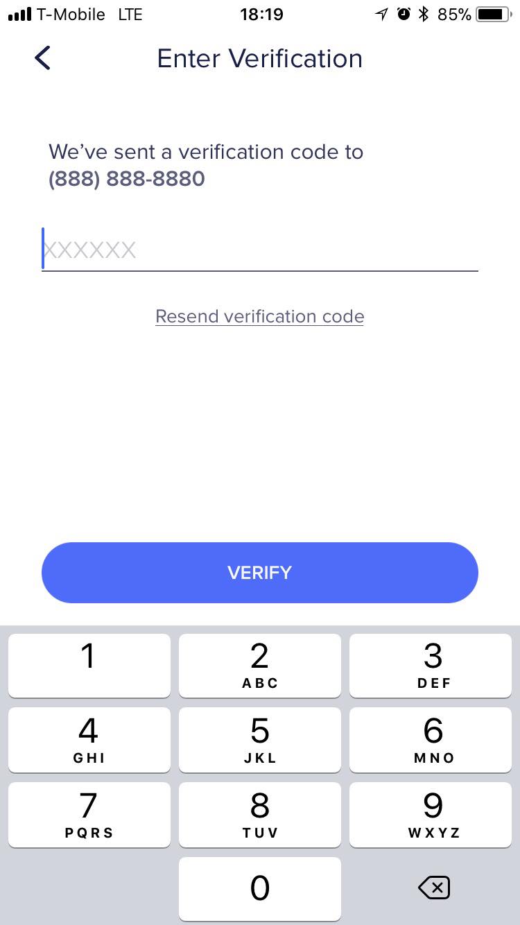 Once you receive a text message with the 6-digit code, return to the app to complete the verification process!