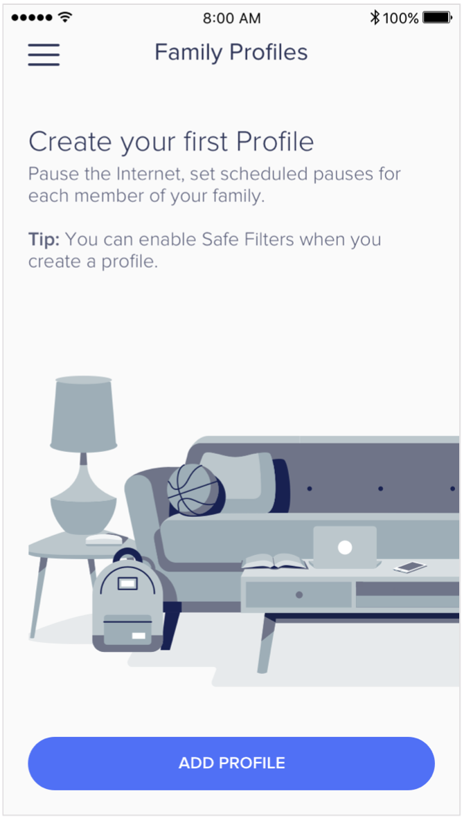 Family Profiles allows you to associate connected devices on your network to specific users within your home. Each device can only be added to one profile, so shared devices like the family room TV will need to be associated with a single user or profile.